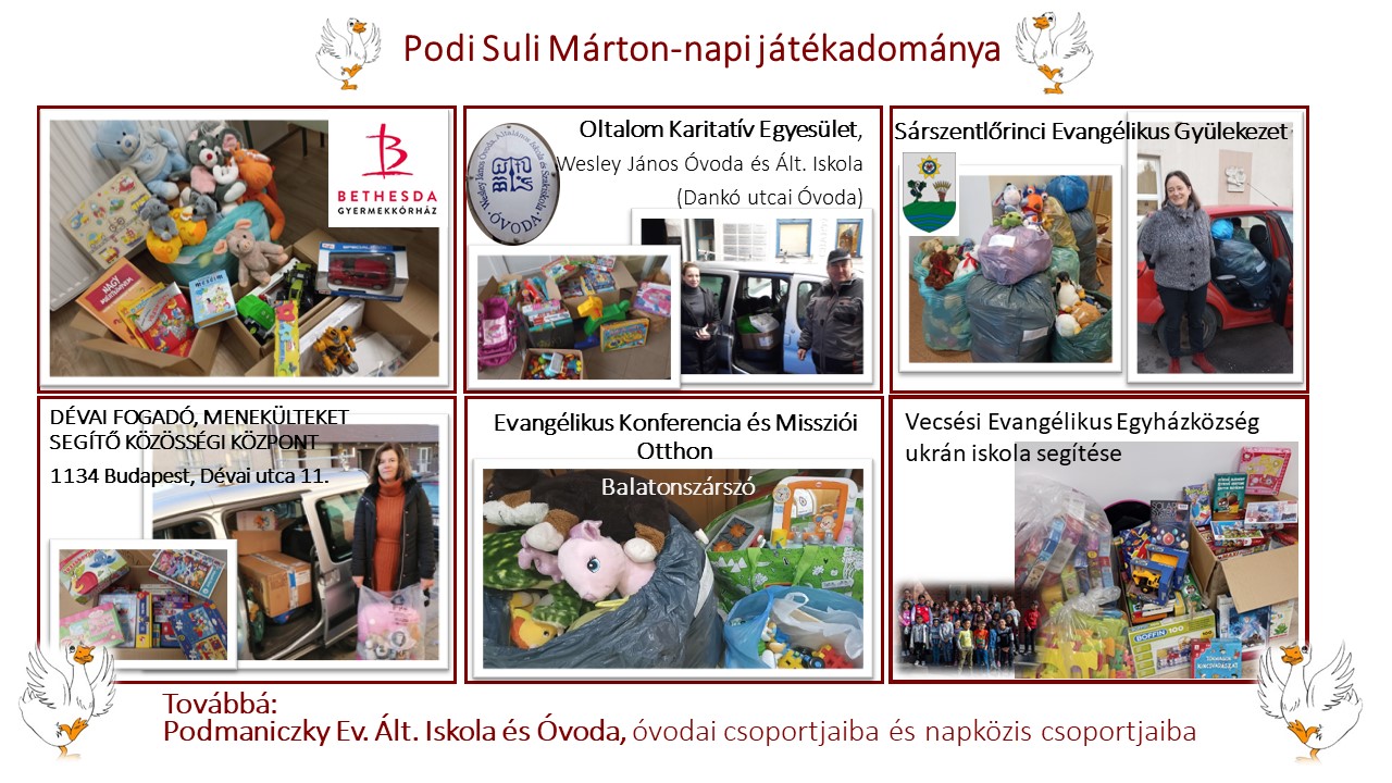 A Podmaniczky Evangélikus Általános Iskola szülei az idei tanévben is túlszárnyaltak minden elképzelést adományozás tekintetében. Márton napi játékgyűjtési akciónk Hullánné Mladek Mária, Makai Henrietta pedagógusok és B. Pintér Márta iskolalelkészünk kezdeményezésére, idén szerveződött először. Használt, de jó minőségű játékadományokat kértünk a családoktól, hogy azokat rászoruló gyerekeknek továbbíthassuk.Első terveinkben két célhelyszínt hirdettünk meg, de a gyerekek … Olvass tovább